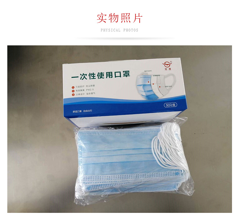 每只口罩都經過嚴格檢驗,三層(內外雙層無紡布、中層熔噴布)過濾設計,可塑鼻梁條更加貼合面部,柔軟貼面、防塵防沫、清潔衛生。